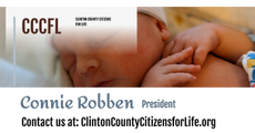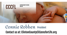 Clinton County Citizens for Life is a 501(c) (4) non-profit educating the public about Alternatives to Abortion and about voting stances of our elected officials. (Therefore, donations are not tax deductible.)